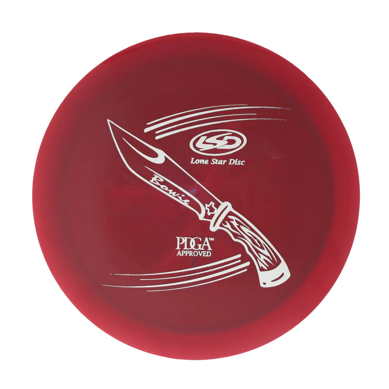 Lone Star Disc's first distance driver; fast and overstable, the Bowie can handle some serious power. Ideal for combating head winds, forehand throws, and strategic doglegs.
