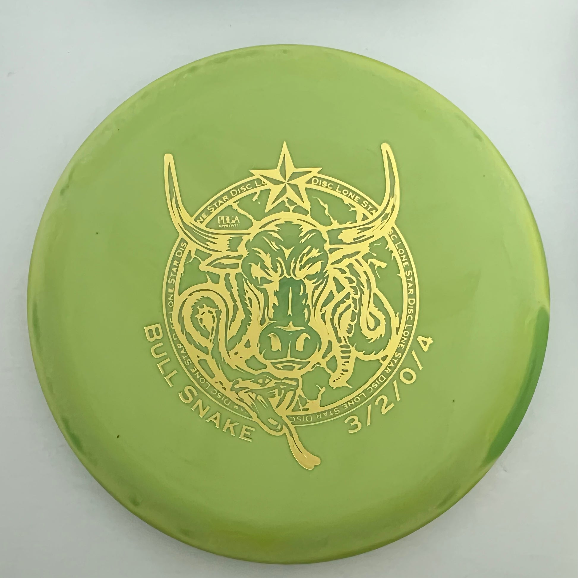 The Bull Snake is an overstable Putt and Approach disc that features a strong shoulder, a microbead, and an elongated wing.