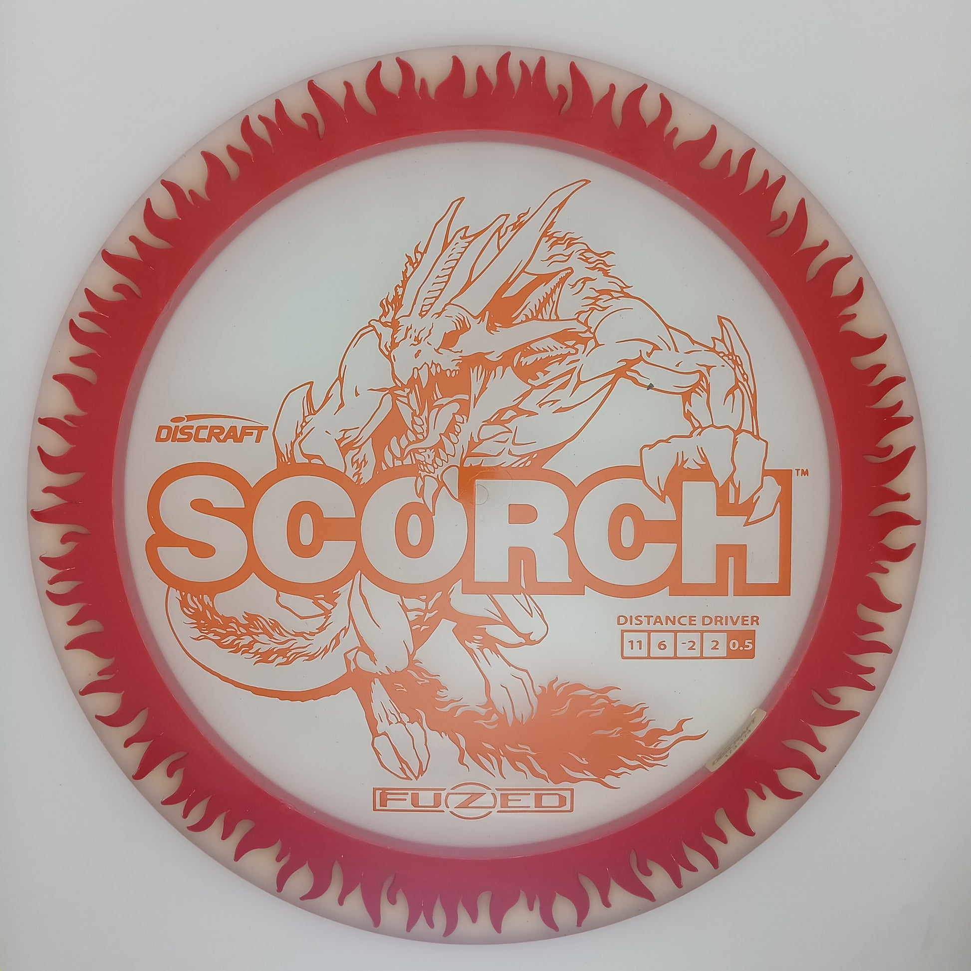 Each FuZed Line Scorch boasts a vibrant flame-burst effect on the rim. This release of the Scorch is notably domey, adding extra glide for those big turnover shots and hyzer flips that define the Scorch’s signature flight.