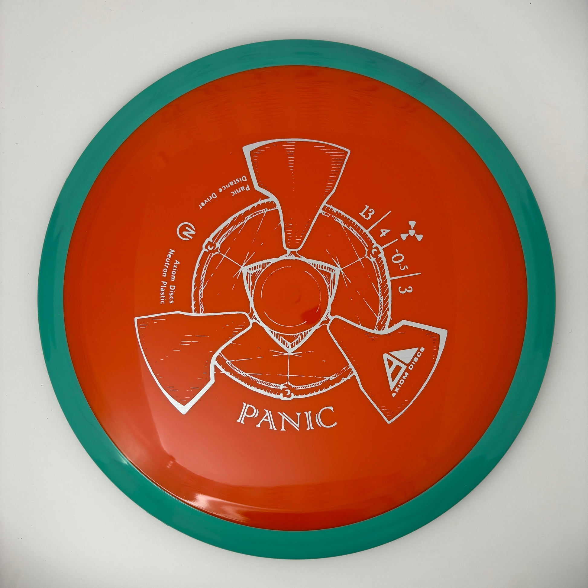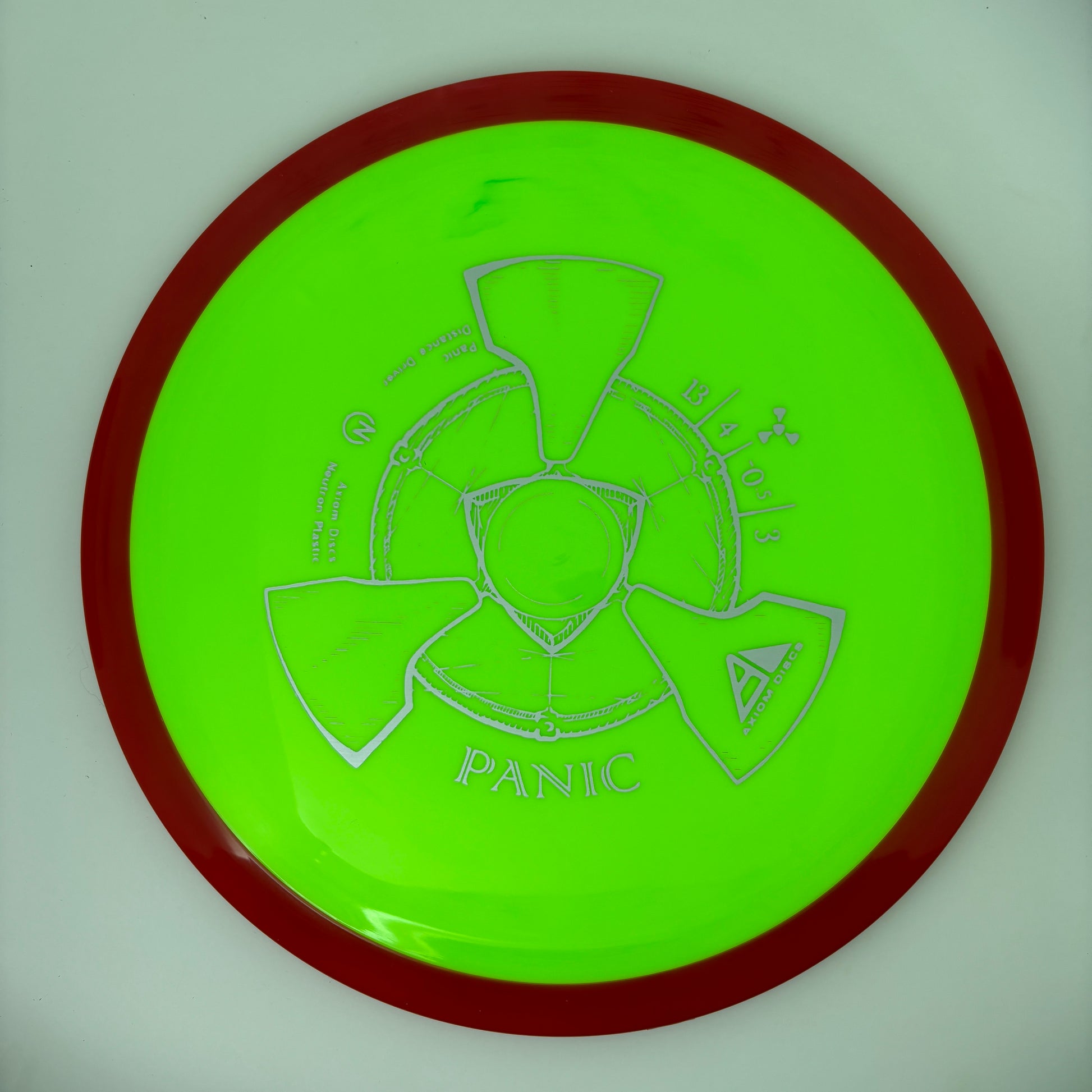 The Panic is thoroughly overstable, with plenty of beef to handle headwinds and torqued-up sidearms. Its overstability holds the Panic on any kind of hyzer line and allows steep anhyzer flex shots. For high-power throwers, the Panic will be a useful utility driver, while newer and average throwers will get an extremely overstable flight. The Panic is best described as a seasoned MVP Nitro.