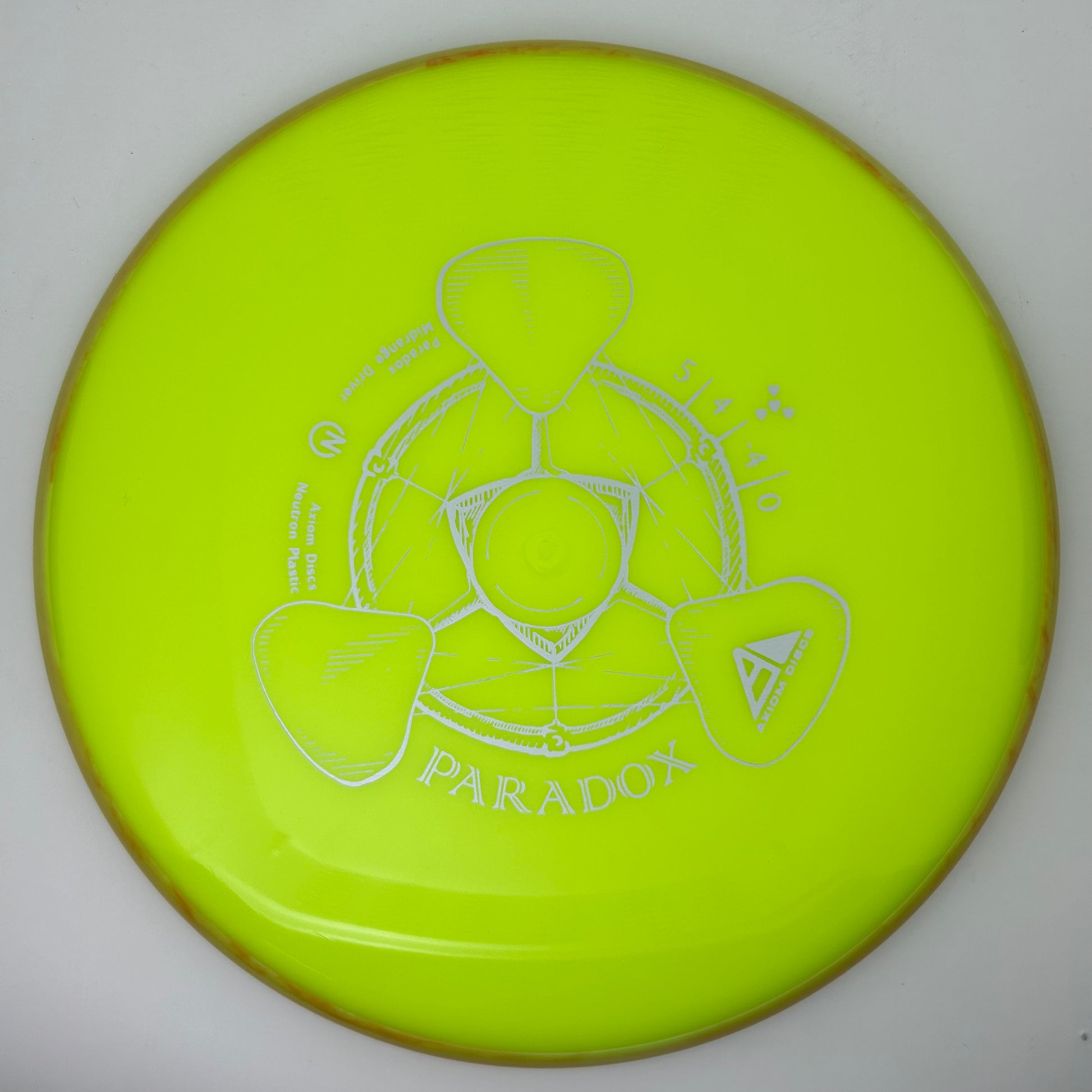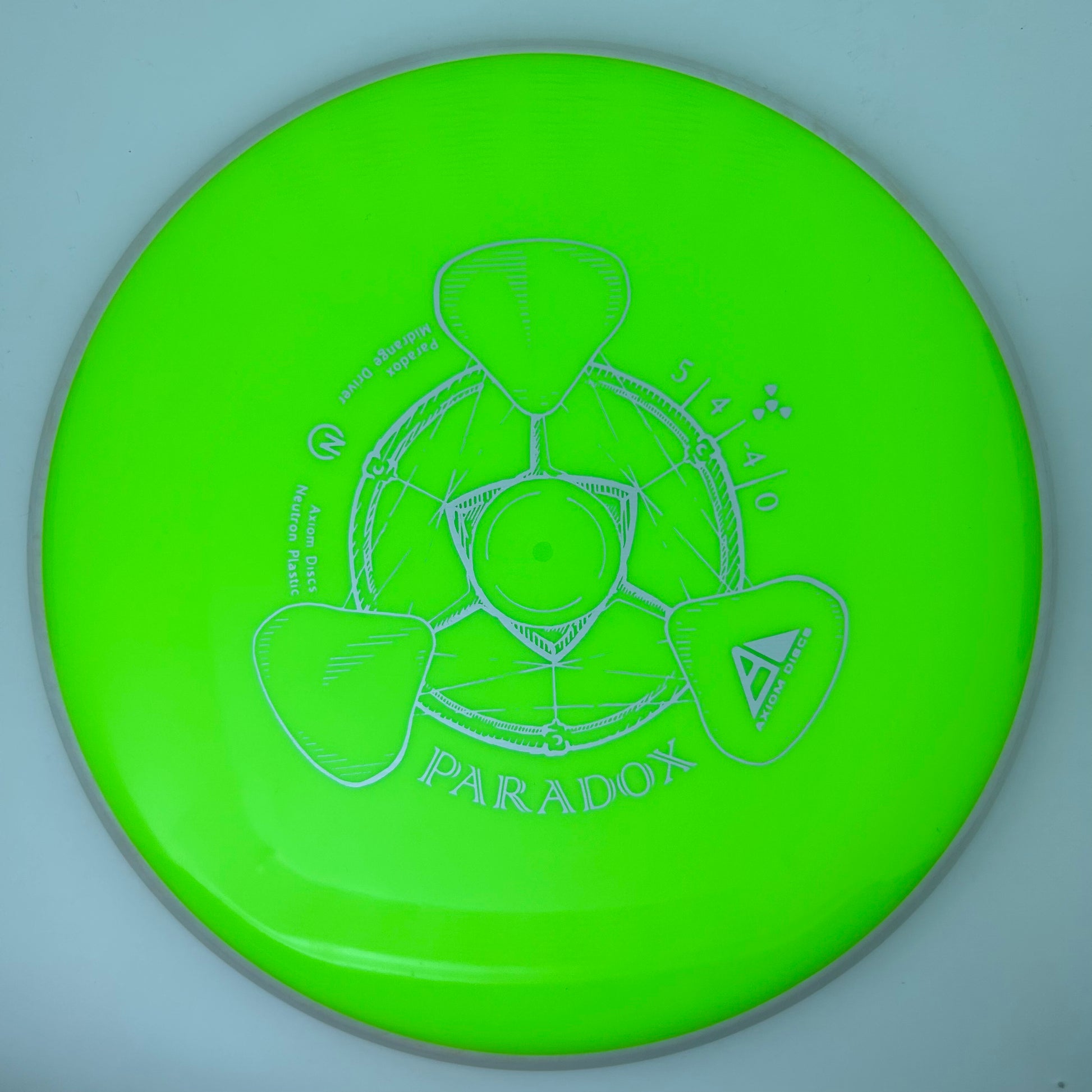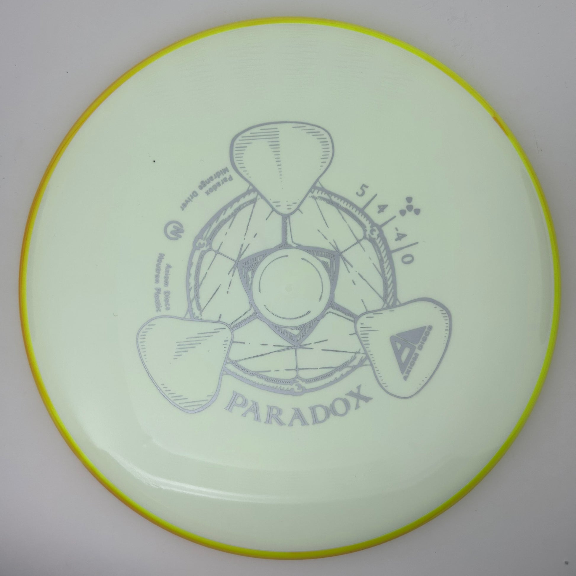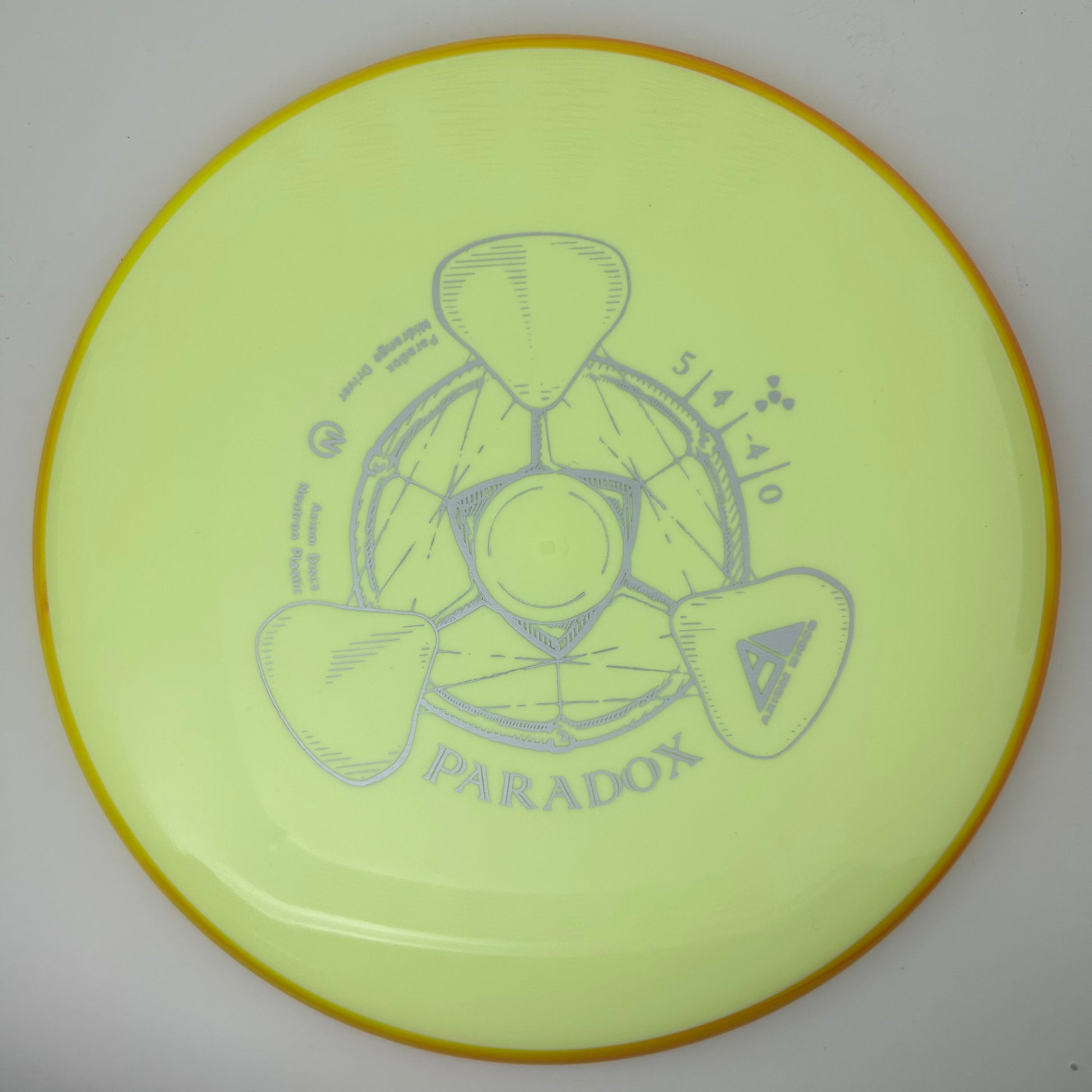 Among the most understable midranges ever produced, the Paradox is capable of some truly unique lines. High-power players will be using the Paradox for utility shots like rollers, low speed flip ups, massive nose up anhyzers, and other touch shots. Low-power players will find the Paradox is a great first midrange for straight or hyzer-flip flights. Whether you're using it as a teaching tool, or a utility disc for woods golf, the Paradox's understability won't let you down. If you need it to turn, the Paradox is the disc for you!