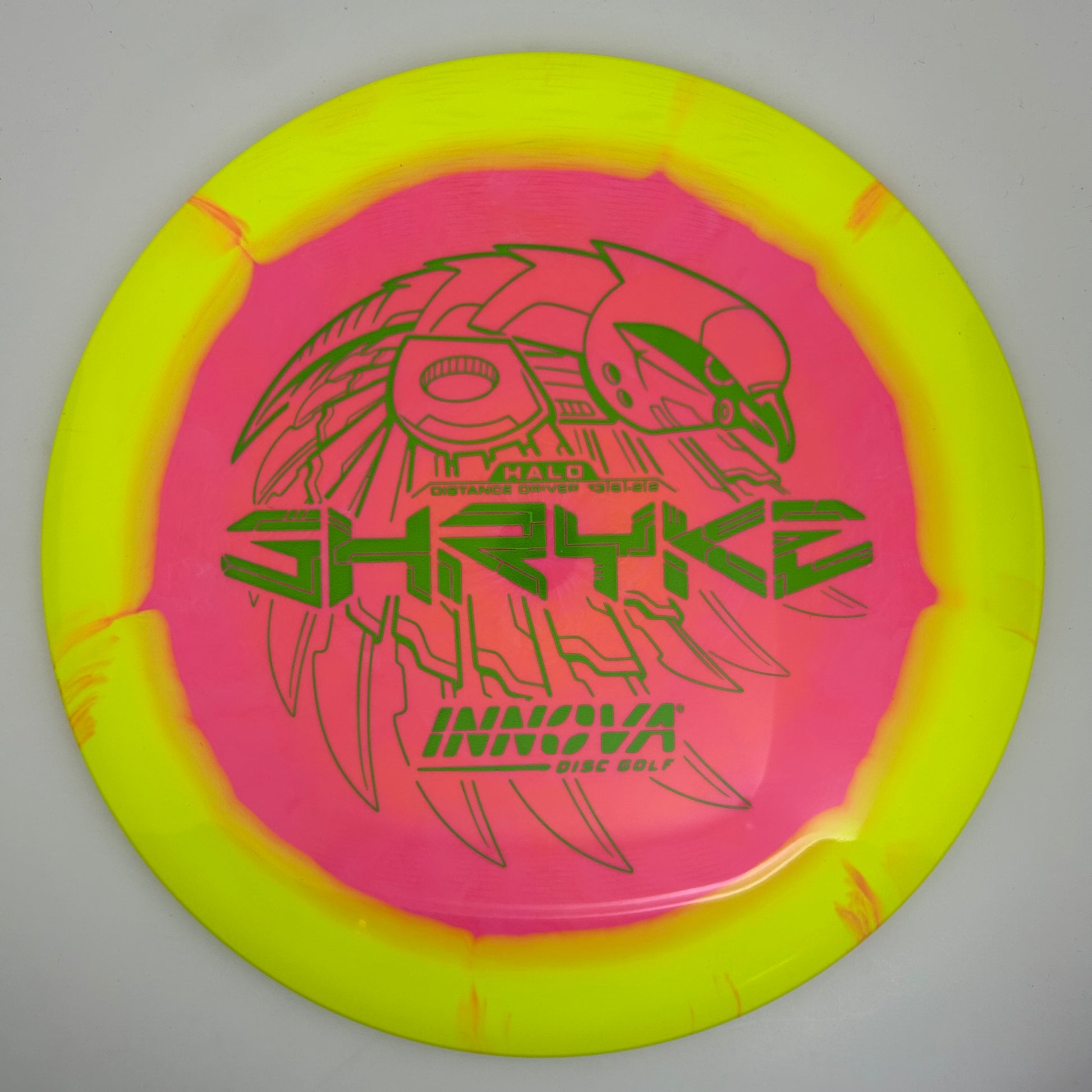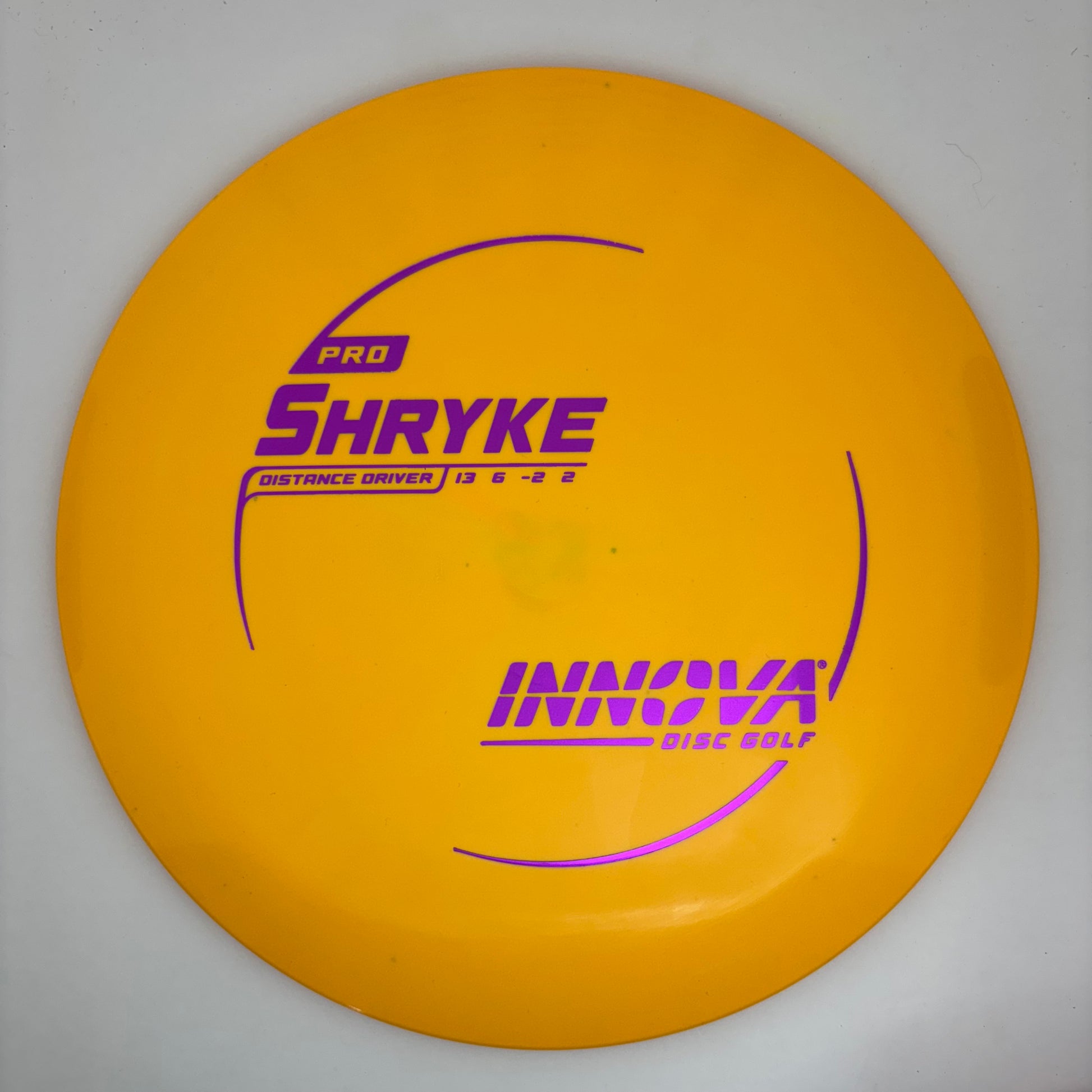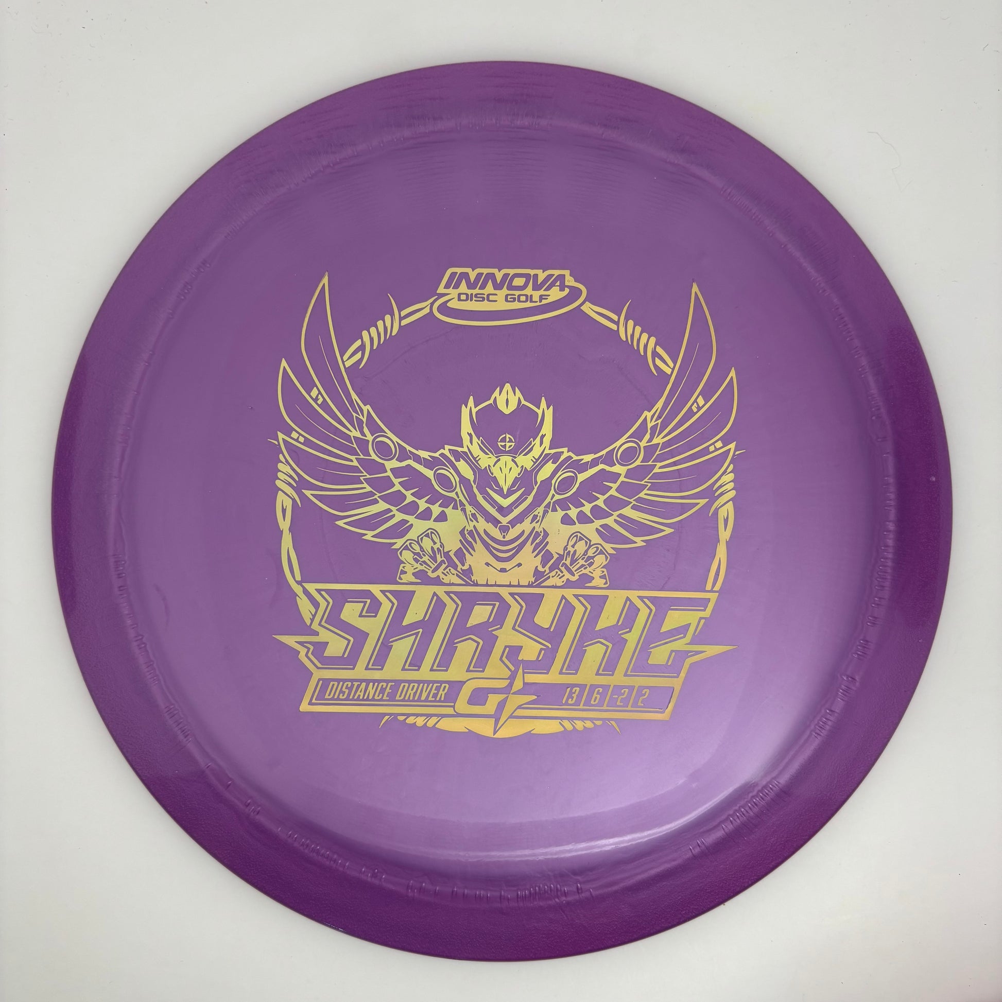 The Shryke is a long range distance drive that is easy to throw. It has exceptional glide and a predictable gentle fade at the end of its flight. The Shryke also has mild low speed fade, making it ideal for beginners. It is less stable than a Destroyer and more stable than a Tern, filling a gap with huge distance potential in calm wind conditions.