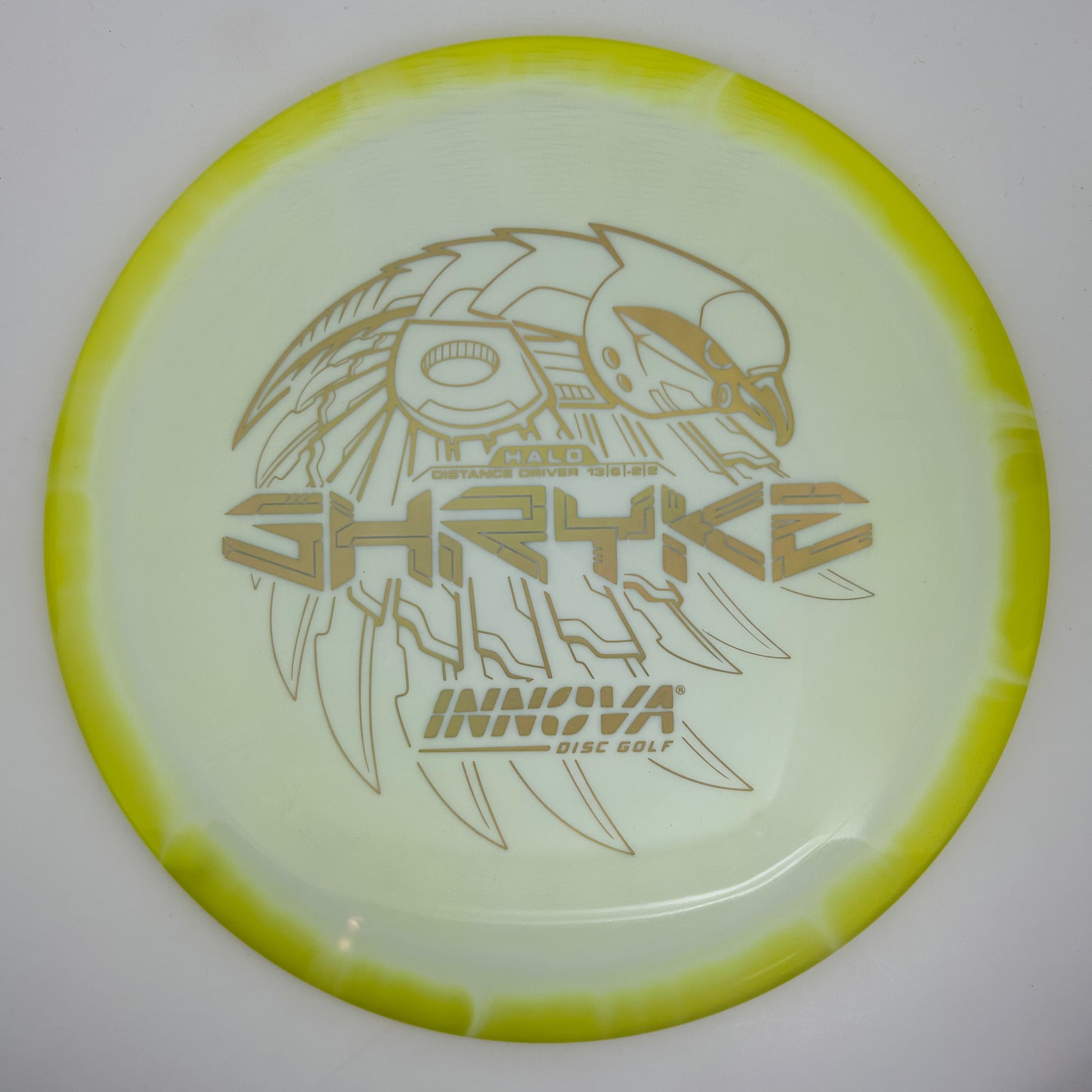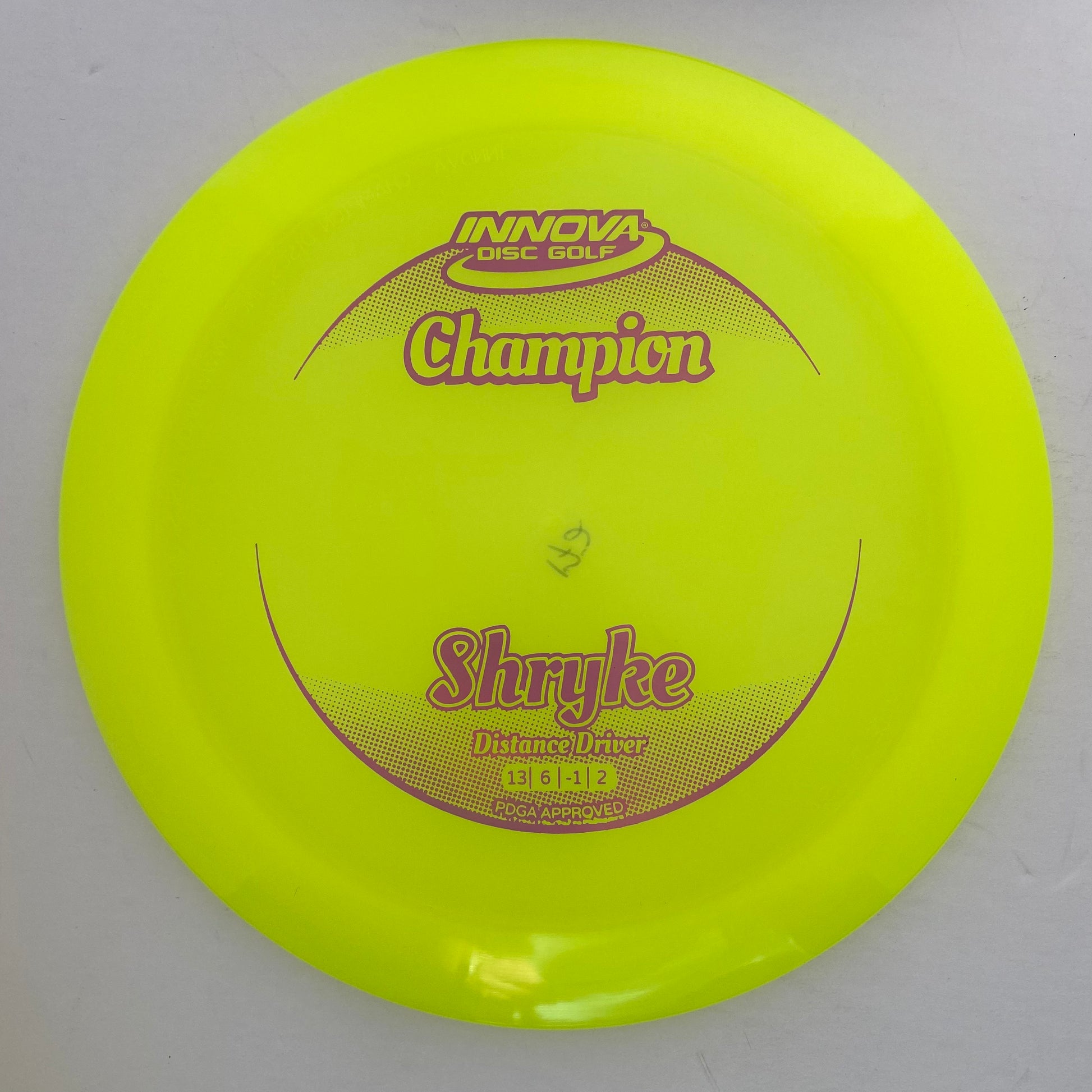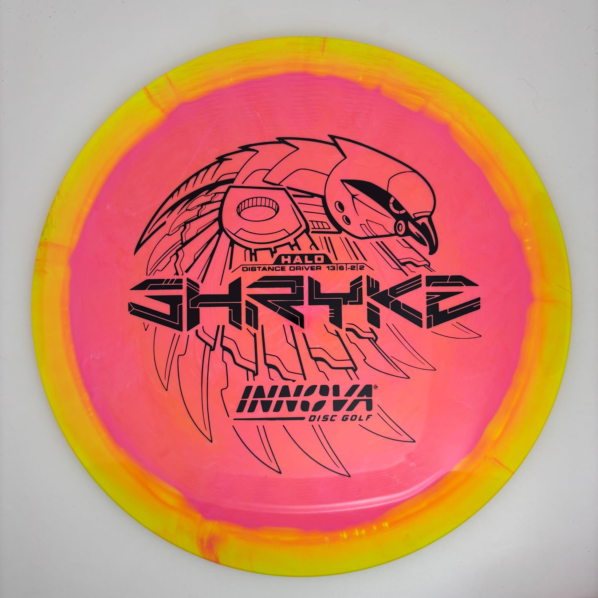 The Shryke is a long range distance drive that is easy to throw. It has exceptional glide and a predictable gentle fade at the end of its flight. The Shryke also has mild low speed fade, making it ideal for beginners. It is less stable than a Destroyer and more stable than a Tern, filling a gap with huge distance potential in calm wind conditions.
