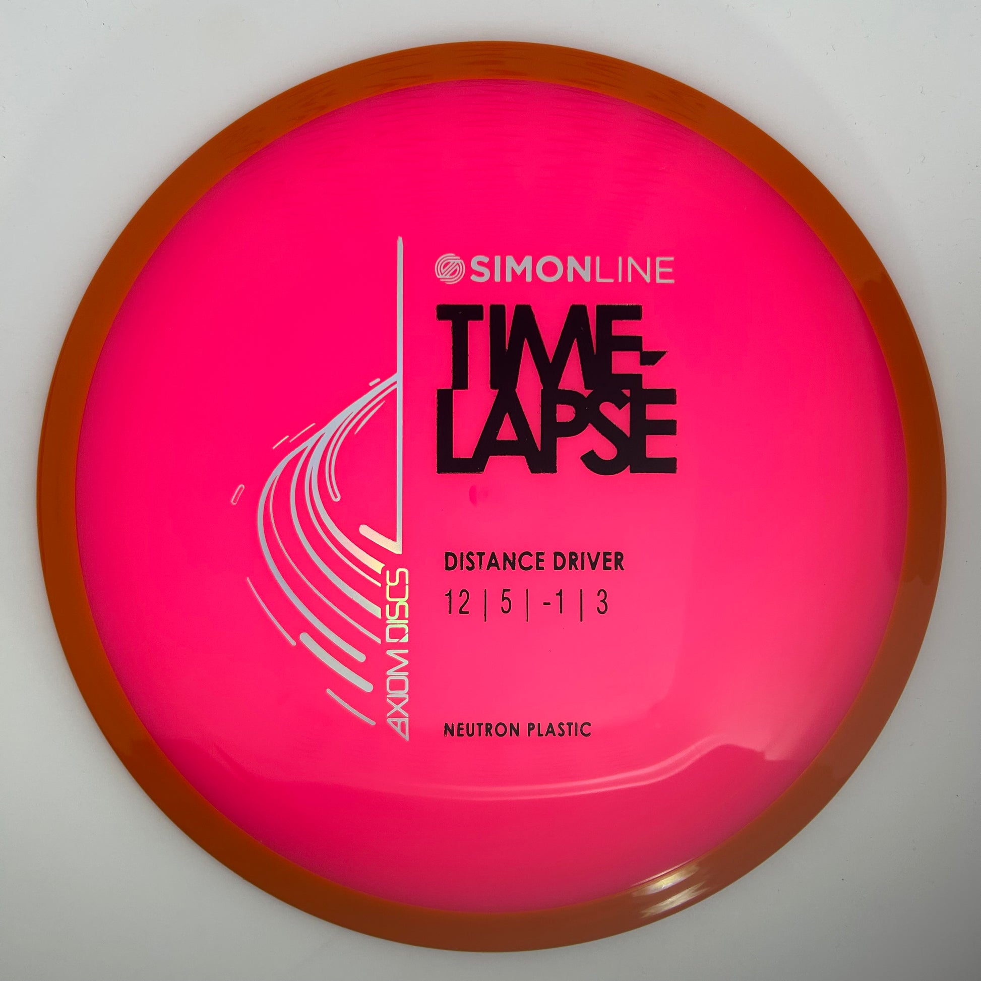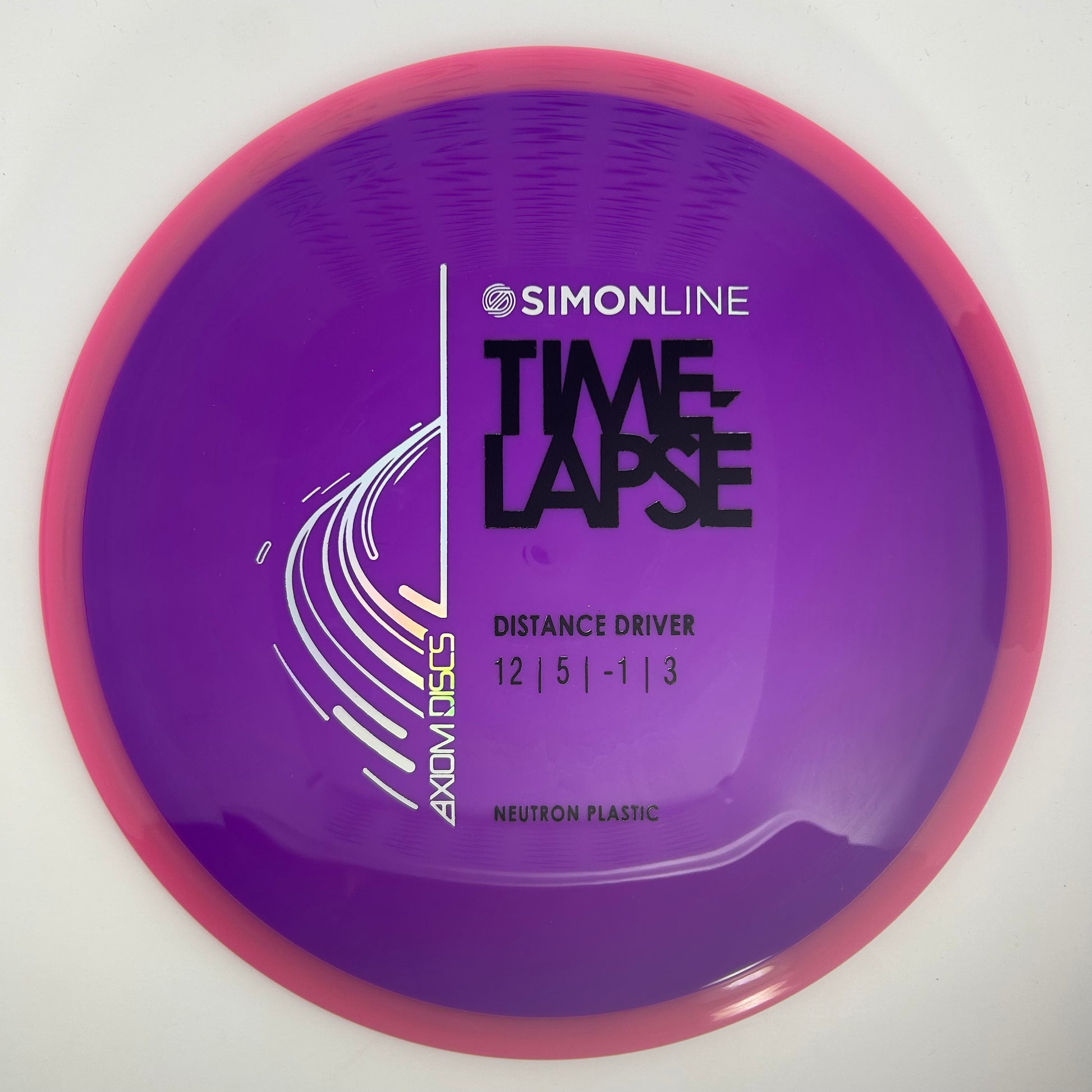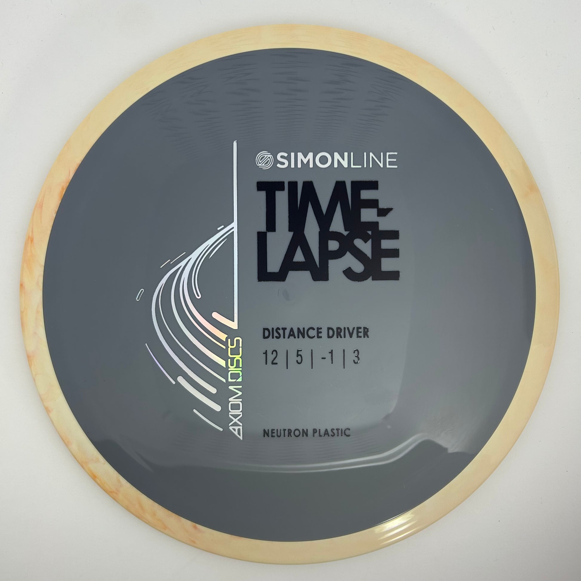 With flight numbers of 12 | 5 | -1 | 3, the Time-Lapse has the potential to be your go-to bomber or favorite flex-line smasher. Experienced players will find the Time-Lapse to be a dependable straight-to-overstable flier, with high-power players activating some flight-extending turn. While newer players will still find a ton of utility here as a versatile line-shaper or a very lofty wind fighter. With a Neutron Time-Lapse in your bag, there are truly No Limits.
