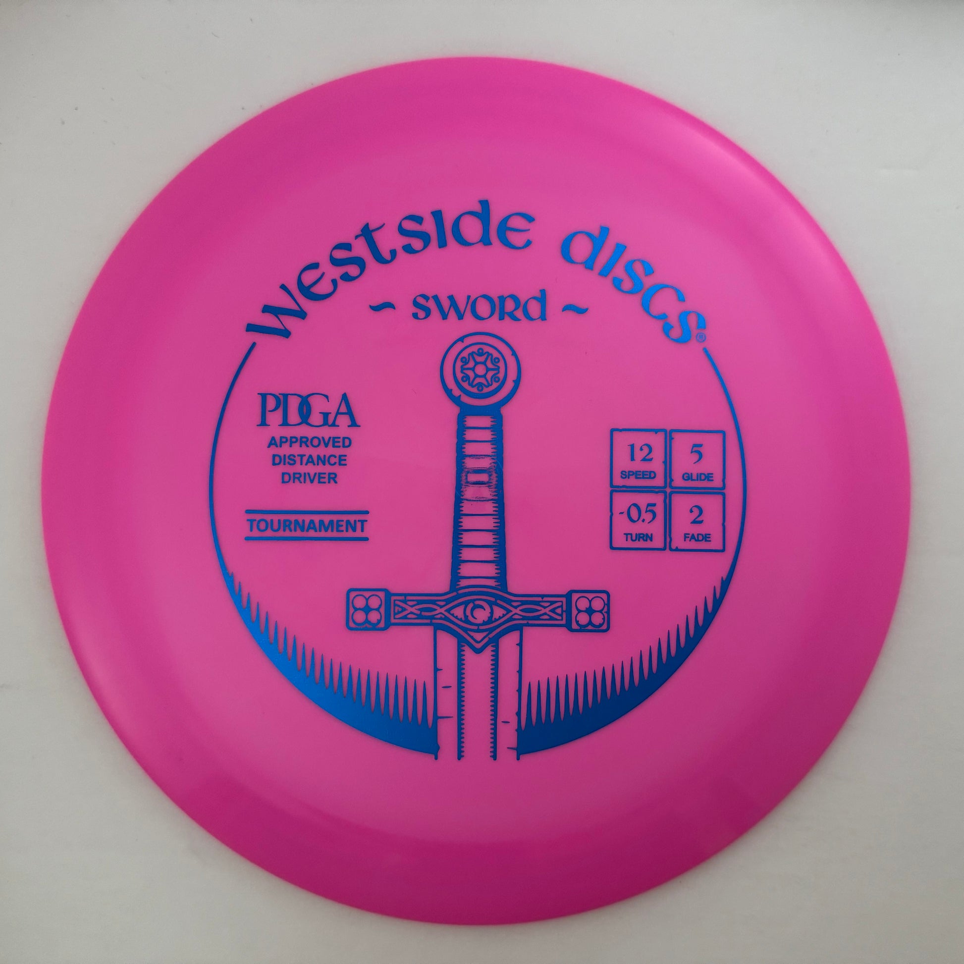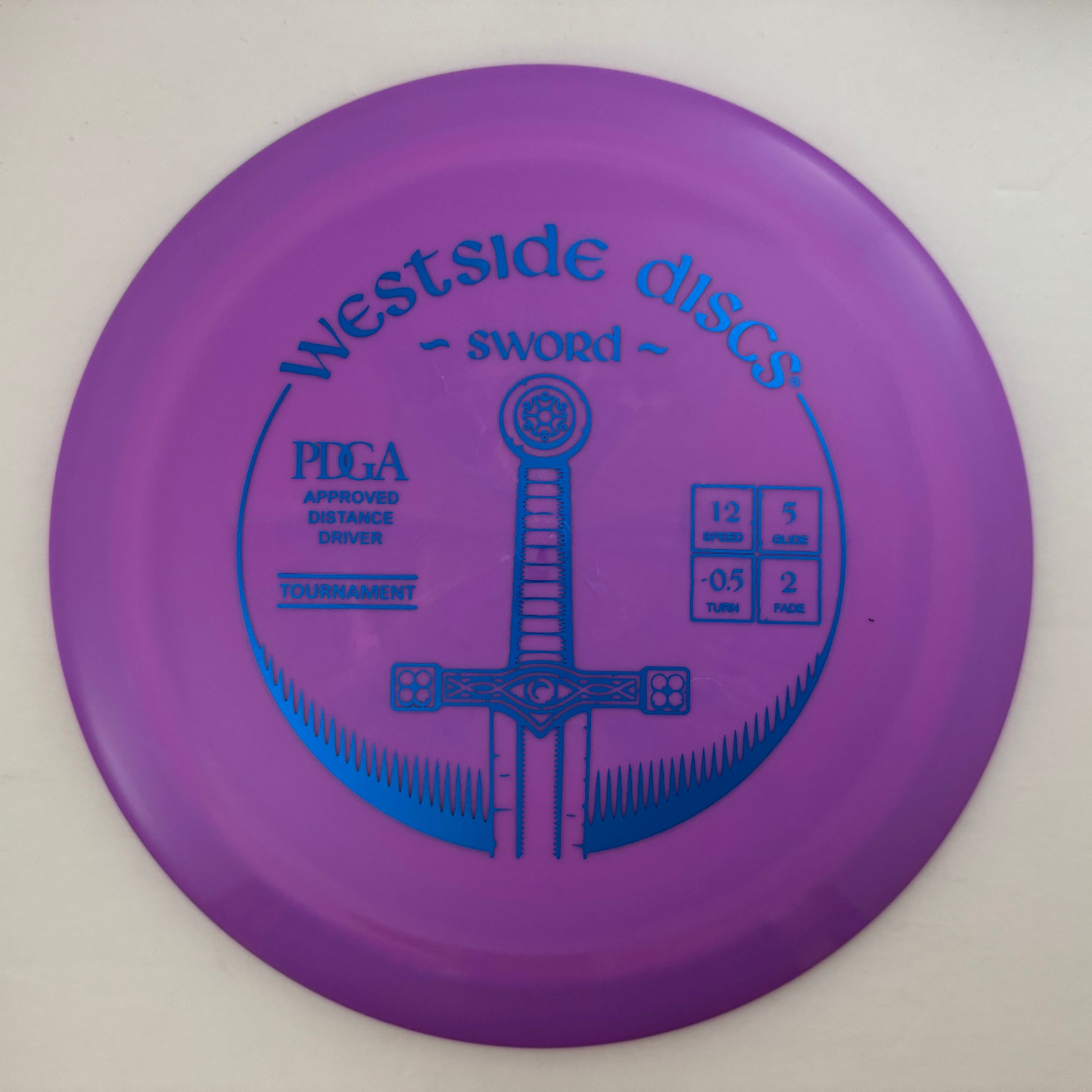The Westside Sword is one of Westside's high speed drivers that is extremely user friendly. Designed to slice through the air with ease, the Sword will hold any line you put it on, a straight line flight with a Hyzer finish. For professional players, the Sword will fly straight, long, and predictable. For lower speed arms, the Sword will give you that extra distance you want without losing any accuracy.