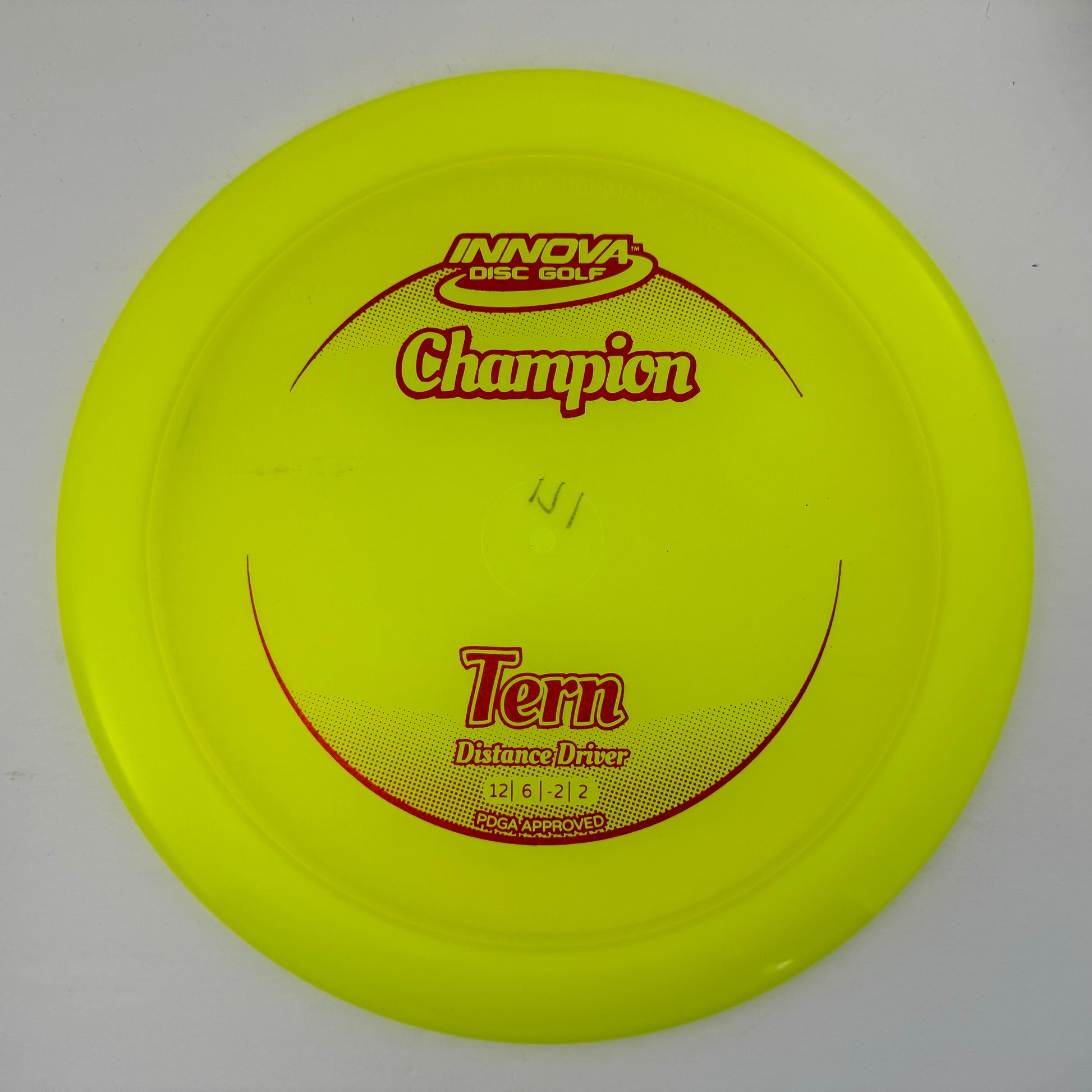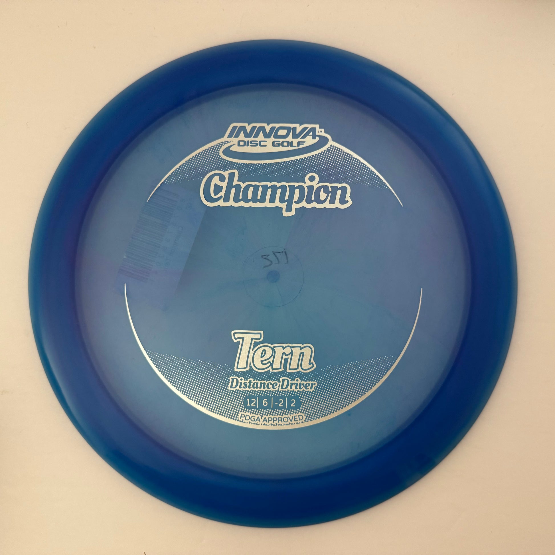 The Tern is an understable high speed driver. Being understable, this is a comfortable disc that provides max distance for intermediate players. While the Tern’s rim is very wide (2.3 cm) it isn’t at max width like the Dominator, Vulcan, or Katana. The Innova Tern was approved by the PDGA on December 3, 2012. Innova states that the flight rating of this disc in Star and Champion plastic slightly differ. The flight rating for Champion Plastic is 12/6/-2/2. The Champion plastic that the Tern is manufactured in is super clear and looks really sharp.