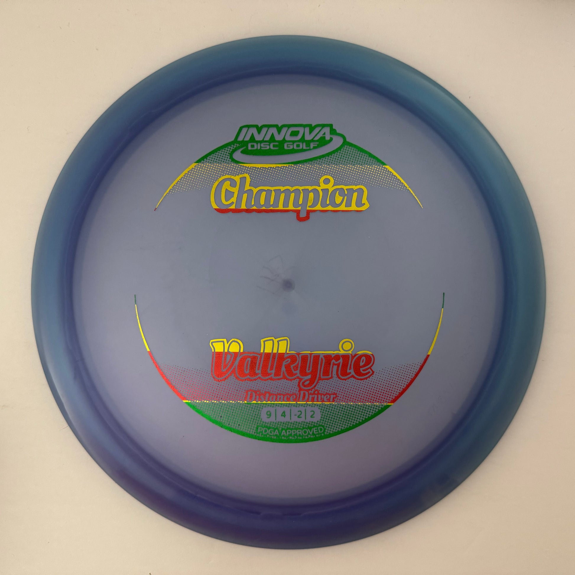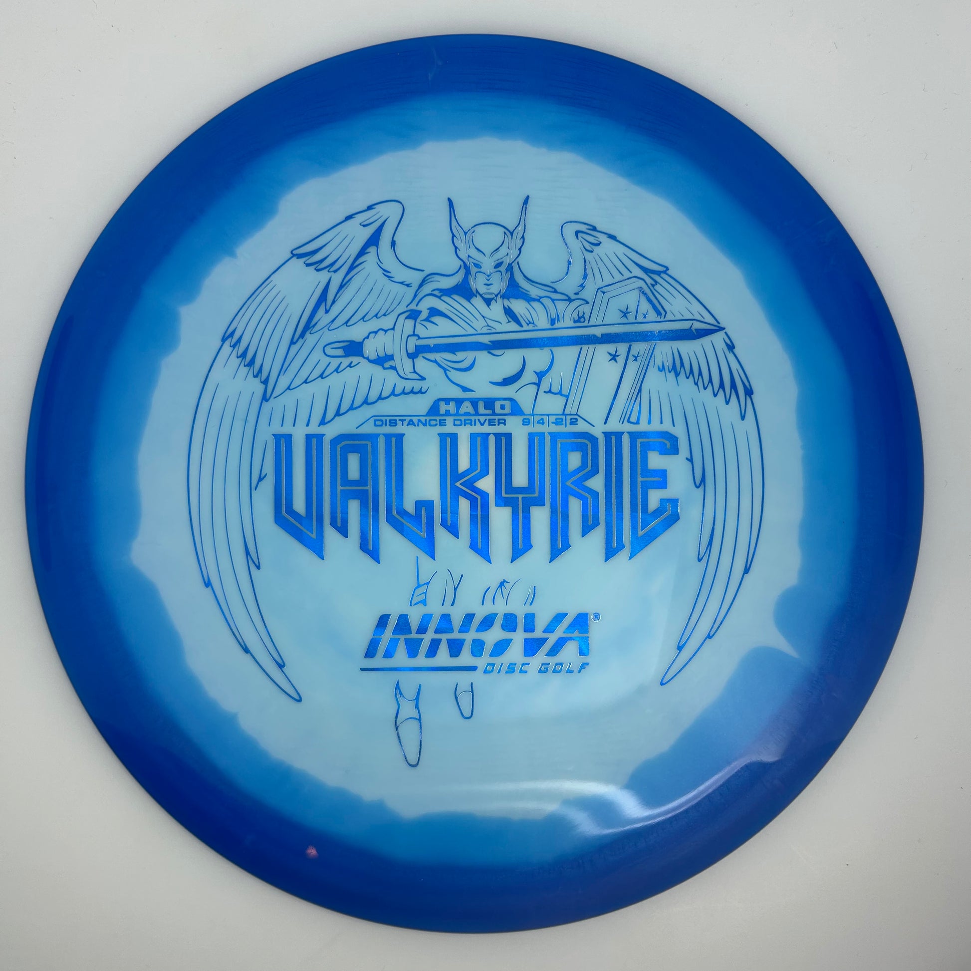 In lighter weights gives new players extra distance. Lighter weights also give players extreme range when thrown downwind, while maximum weights can give excellent upwind distance. The Valkyrie's high speed turn and flight characteristics make it great choice for long range turnover shots and rollers.