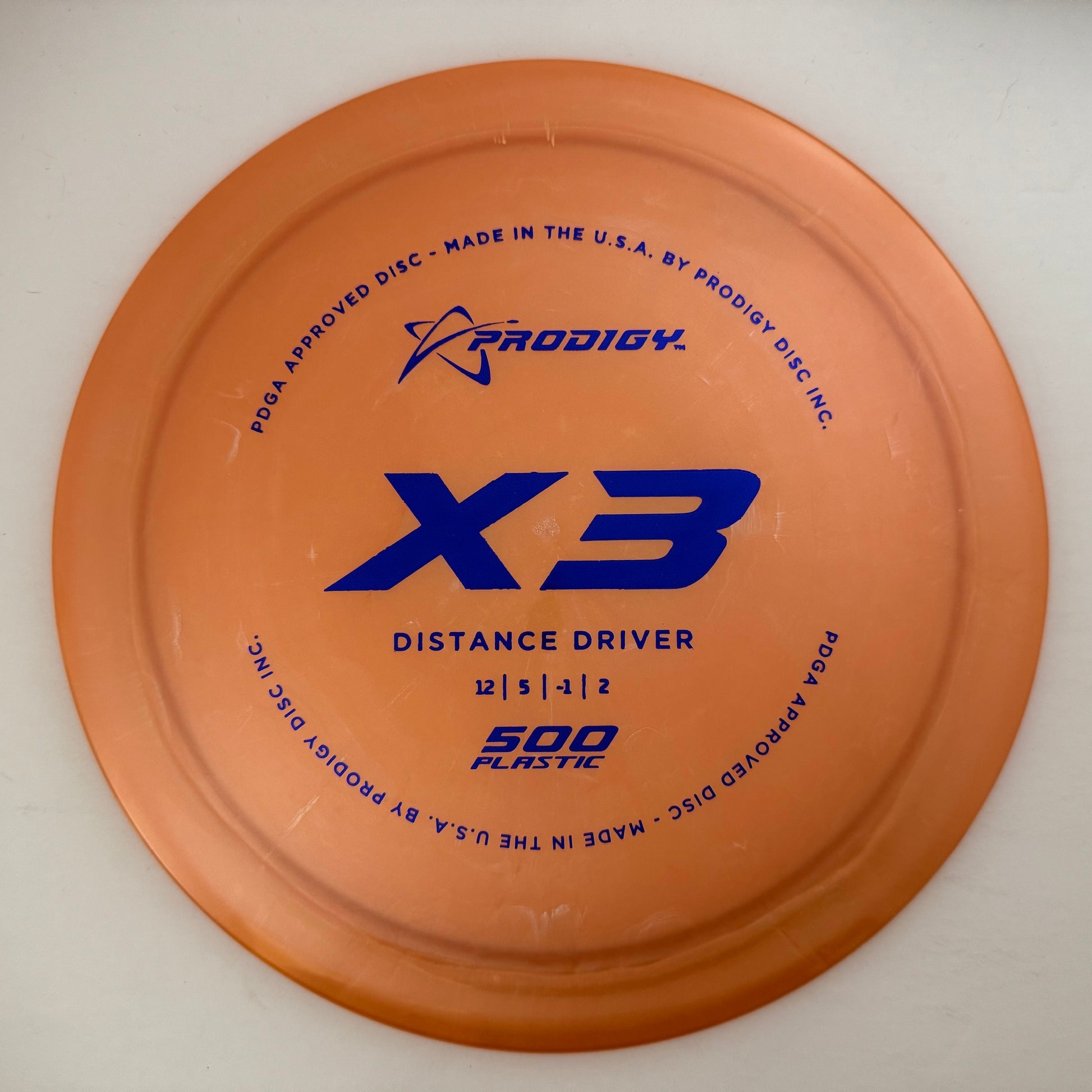 The Prodigy Disc X3 is a consistent, very long flying, slightly over stable distance driver designed for all skill levels. The X3 is a great choice for any player looking to throw long, fast, and dependable drives. The X3 is slightly less stable than the X2, giving it a longer glide period in the middle of the flight path, and a softer left to right finish. The X3 matches the X1 and X2 in consistency but exceeds in turn and glide.