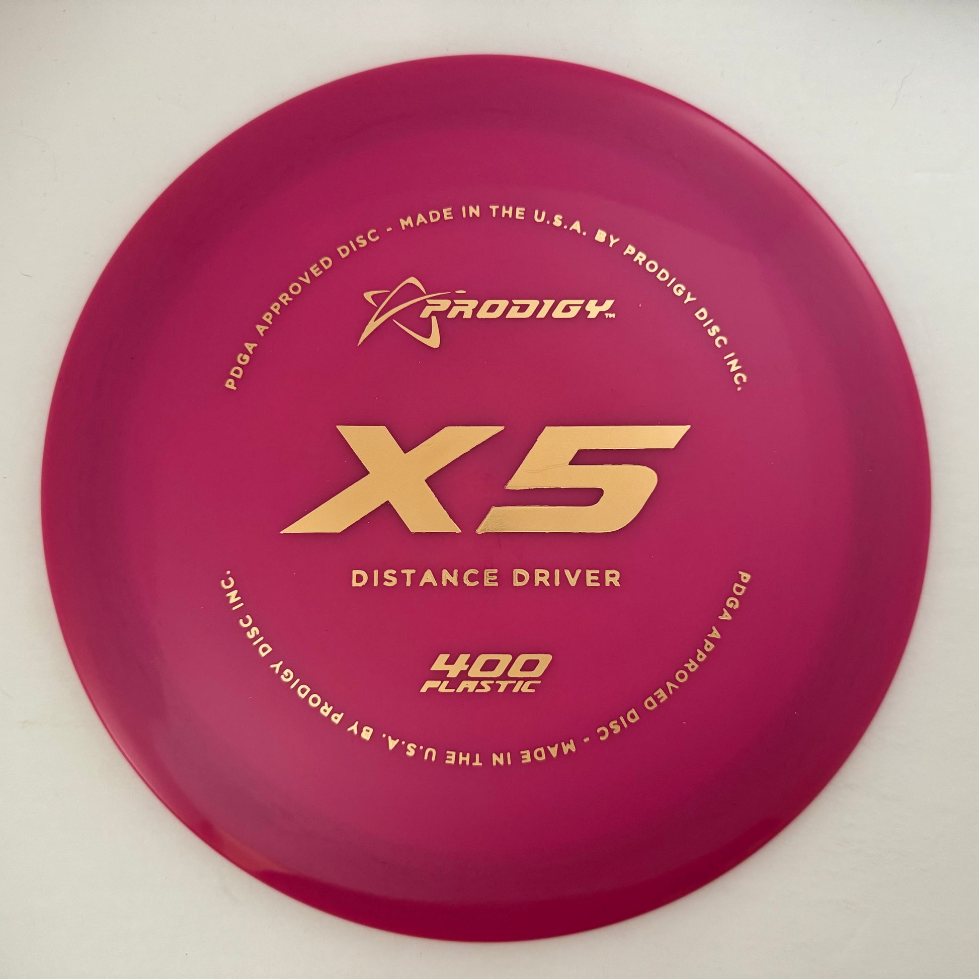 The Prodigy Disc X5 is an understable, low profile, high-speed distance driver. It is great for all players. Players with lower arm speed will get a lot more glide and distance. Players with moderate arm speed will be able to get a long flight out of this disc by throwing a slight hyzer flip. (Left edge down about 20% from flat at release). For players with faster arm speed, the X5 will flip early in its flight path and will turn right, with a soft finish to the left making it useful for wooded holes that require shaping the shot. It will also be great for long controlled rollers. The X5 performs very well at low heights and in tunnel shots.
