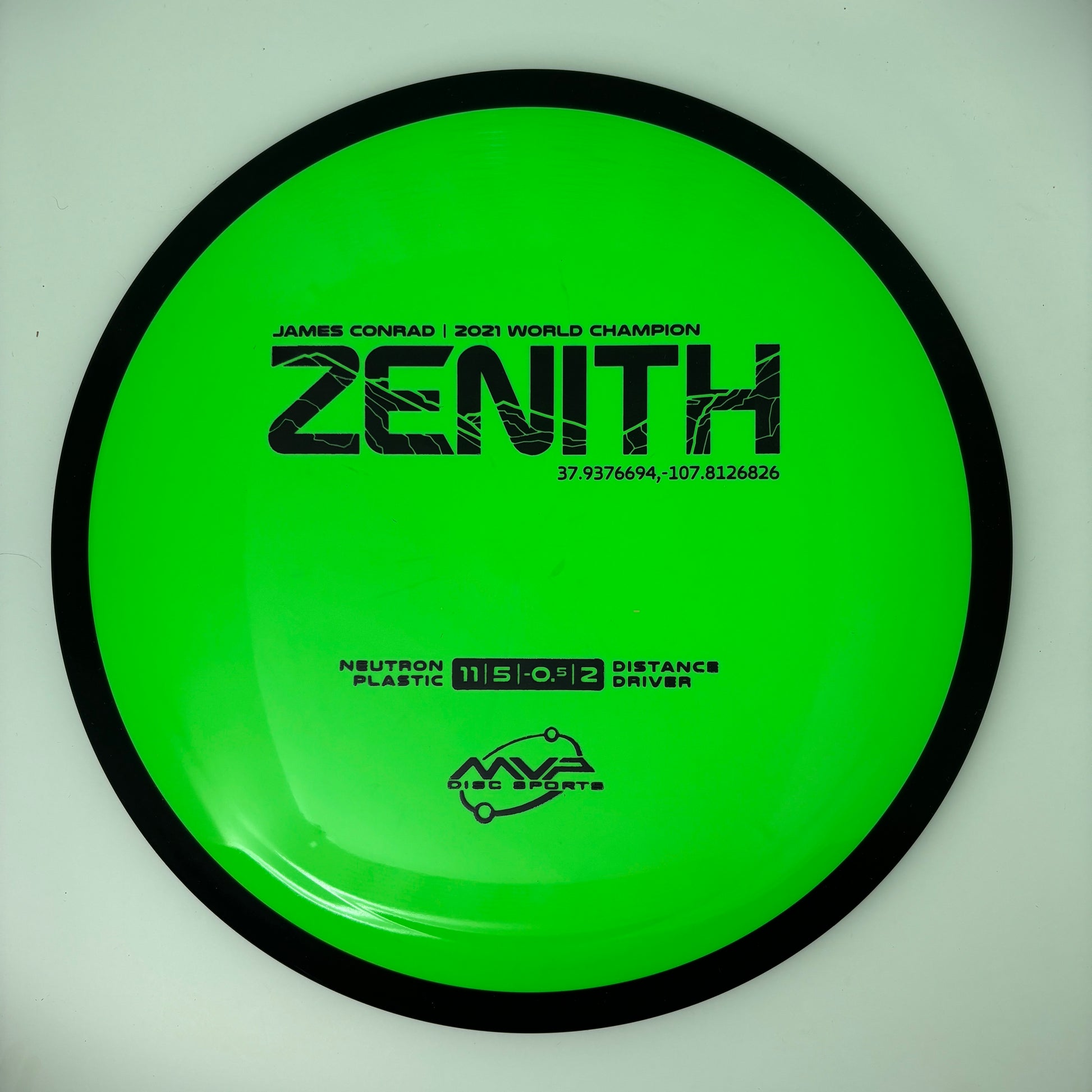 Designed to feel as great in the hand as it flies, the Zenith is a control distance driver with flight numbers of 11 | 5 | -0.5 | 2. With a high power throw, the Zenith will exhibit just enough distance lengthening turn from a flat release before its confident fade kicks in - displaying the ideal flight pattern for a controlled distance drive. And, thanks to its subtle turn, the Zenith can shape some truly impressive lines from an anhyzer release too. Lower power players will find the Zenith to be workably overstable and dependable into any kind of wind. We have a feeling this disc is going to end up in a lot of bags, so grab a Zenith today and see what the James Conrad Line is all about!